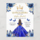 Célébrez votre journée spéciale avec l'Invitation Floral Royal Blue Butterfly Princess Quinceañera. Doté d'une superbe toile de fond bleu roi ornée de délicats accents floraux et de papillons enchanteurs, cet élégant design saisit la beauté et la grâce d'une quinceañera. Parfait pour une fête sur le thème de la princesse, l'invitation allie charme intemporel et modernité. Invitation vos invités à se joindre aux fêtes magiques, marquant cette étape inoubliable avec une invitation qui reflète l'élégance et le raffinement de votre célébration de la quinceañera.