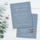 Elégant budget-friendly bleu poussiéreux enregistrer la date annonce pour une réception ou une fête pour célébrer votre événement ou mariage privé. "Save the Date For Our Happily Ever After Party" est écrit dans une simple typographie blanche et un script blanc élégant avec des swashes. Personnalisez votre faire-part et enregistrez les détails de la date, et ajoutez vos noms dans un script de type signature. À l'arrière, entrez l'adresse URL de votre site Web mariage pour créer un code QR que les invités peuvent analyser pour suivre vos photos et événements mariages, et ajoutez vos prénoms et vos dates de mariage et de réception.