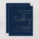 Il y a deux options de papier à choisir pour cette taille (4,5 x 5,6 po) dans la plage Budget. Pour ce produit, je recommanderais le semi-brillant qui est un stock de carte de 110 gsm, semblable en épaisseur à une carte postale. L'option Satin est un papier beaucoup plus fin 80gsm. La valeur par défaut est semi-brillante. VEUILLEZ NOTER qu'il y a UN par feuille. Code QR Budget Marine Blue Gold Typography Faire-part de mariage. Ajoutez votre code QR à votre site Web mariage au dos fait de cette option pratique pour vos invités à RSVP et voir tous les détails sans avoir besoin de RSVP séparé et de cartes de détails. Style typographique minimaliste, avec un script manuscrit pour le Mariage et le reste du texte que vous pouvez facilement personnaliser.