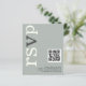 Un rapport qualité-prix BUDGET alternative sur une taille plus petite 4,5 x 5,6" semi-brillant poids 110lbs, qui est d'une épaisseur similaire à une carte postale (cependant ne convient pas à l'utilisation comme carte postale.) VEUILLEZ NOTER qu'il y a UN par feuille. QR Code Sage Ivory Mariage en ligne RSVP. Ajoutez votre code QR à votre site Web mariage afin que vos invités puissent RSVP en ligne. Un design typographique moderne avec RSVP en grande typographie en ivoire avec le "v" en gris, tourné et à gauche sur un arrière - plan de vert sauge clair. Les couleurs Arrière - plans et textuelles peuvent être modifiées si vous le souhaitez via Personnaliser.