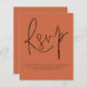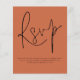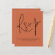 Simple QR Code Script Mariage Terracotta RSVP. Un boîtier d'option pratique pour demander à vos invités de scanner votre code QR vers votre site Web mariage à RSVP. Une alternative économique de 4,5 po x 5,6 po. Disponible dans un STOCK SEMI GLOSS 110 lb CARD ou un STOCK SATIN FINISH 80 lb THINNER PAPER. Une typographie stylisée pour le titre principal RSVP complétant le reste du texte que vous pouvez facilement personnaliser, avec le code QR au dos. Remplacez simplement par le vôtre.