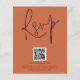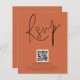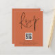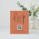 QR Code Script Mariage Terracotta RSVP. Boîtier pour demander à vos invités de scanner votre code QR sur votre site mariage à RSVP. Une alternative économique de 4,5 po x 5,6 po. Disponible dans un STOCK SEMI GLOSS 110 lb CARD ou un STOCK SATIN FINISH 80 lb THINNER PAPER. Une typographie stylisée en noir pour le titre principal RSVP complétant le reste du texte que vous pouvez facilement personnaliser.