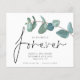 Un rapport qualité-prix BUDGET alternative sur une taille plus petite 4,5 x 5,6" semi-brillant poids 110lbs, qui est d'une épaisseur similaire à une carte postale (cependant ne convient pas à l'utilisation comme carte postale.) VEUILLEZ NOTER qu'il y a UN invitation par feuille. Nous avons décidé sur Forever EucalyptUs Save Date Forever dans un script informel.Le reste du texte que vous pouvez facilement personnaliser. Vous pouvez modifier les couleurs du texte et du blanc de l'arrière - plan si vous le souhaitez via l'option personnaliser.
