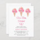 Cette jolie invitation à la douche nuptiale sur le thème de la crème glacée est décorée de trois cônes de crème glacée aquarelle et de fleurs. Le texte dit : "Elle a été emportée !" dans une typographie rose stylisée. Customisez cette carte en ajoutant vos informations sur la douche. Aquarelle originale © Michele Davies.