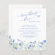 Prévoyez-vous une douche nuptiale spéciale ? Cette invitation à la douche nuptiale à budget floral est décorée de fleurs d'aquarelle bleue et de papillons. Il dit "Quelque chose de bleu avant moi" dans la typographie stylisée. Facile à personnaliser. Aquarelle originale © Michele Davies.