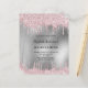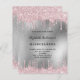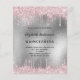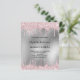 Une invitation moderne, élégante et glamour pour une Quinceañera, 15ème anniversaire. Un arrière - plan à l'aspect métallique faux argent avec une élégante goutte de parties scintillant rose, la peinture goutte à goutte. Le nom est écrit avec un script de style moderne et noir écrit à la main. Personnalisez et ajoutez un nom, un âge et des détails de la fête.