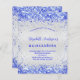 Pour une Quinceañera branchée, fête du 15e anniversaire. Un arrière - plan métallique à l'aspect faux argenté. Décoré de parties scintillant en faux bleu royal. Personnalisez et ajoutez un nom et des détails du parti. Le nom est écrit avec un script de style manuscrit