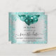 Une petite fille et tendance Enregistrer la carte Date pour une Quinceañera, 15e anniversaire fête. Un arrière - plan faux argenté décoré de poussière et de ballons turquoises et verts de fausse parties scintillant. Personnalisez et ajoutez une date et un nom/âge. Le texte : Save the Date est écrit avec un grand script de style à la main tendance.