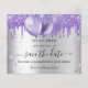 Un arrière - plan faux argenté décoré de parties scintillant et de ballons violet, couleur lavande. Personnalisez et ajoutez une date et un nom/âge. Le texte : Save the Date est écrit avec un grand script de style à la main tendance.