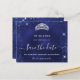 Une petite fille et tendance Enregistrer la carte Date pour une Quinceañera, 15e anniversaire fête. Un arrière - plan bleu inégal. Décoré avec de la poussière de parties scintillant imitation et une tiare, couronne. Le texte : Save the Date est écrit avec un grand script de style à la main tendance.