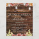 Budget Rustic Country Outdoors on Dark Wood with Burgundy, Orange and Yellow Sunflowers with Mason Jars on String Light Automne ou Automne Quinceanera Celebration Party Invitations - comprend une belle et élégante typographie de script pour la fête d'anniversaire spéciale.