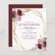 Budget Bourgogne et rose vif Moderne et élégant Faux Gold Foil Cadre géométrique Floral Aquarelle Printemps Quinceanera 15e anniversaire Invitations - comprend une belle et élégante typographie script avec des fleurs botaniques modernes et la verdure pour la célébration spéciale du quinzième anniversaire.