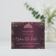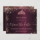 Une petite fille et tendance Enregistrer la carte Date pour une Quinceañera, 15e anniversaire fête. Une couleur arrière - plan à l'aspect faux métallique bordeaux. Décoré avec de la poussière de parties scintillant en faux or rose et une tiare, couronne. Le texte : Save the Date est écrit avec un grand script de style à la main tendance.