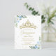 Elégante parties scintillant en or tiara bleu clair floral abordable soirée quinceanera 4.5"x5.6" invitations. VEUILLEZ NOTER : Les enveloppes NE SONT PAS INCLUSES ; les enveloppes A7 correspondantes sont disponibles pour être achetées séparément.