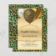 Pour un élégant Quinceañera, 15ème anniversaire. Un léopard vert émeraude et or, arrière - plan motif de guépard. Un cadre doré et des ballons. Personnalisez et ajoutez un nom, un âge et des détails de la fête. Le nom est écrit avec un script de style manuscrit