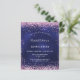 Une invitation moderne, élégante et glamour pour une Quinceañera, 15ème anniversaire. Un arrière - plan bleu marine, décoré avec de la poussière de parties scintillant en faux rose. La couleur bleue est inégale. Personnalisez et ajoutez votre nom et les détails de votre fête.