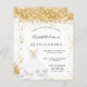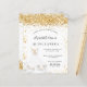 Une invitation moderne, élégante et glamour pour une Quinceañera, 15ème anniversaire. Un arrière - plan blanc élégant avec de la poussière de parties scintillant en faux or et une robe. Le nom est écrit avec un script de style moderne écrit à la main. Personnalisez et ajoutez les détails de votre fête.