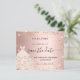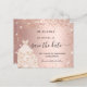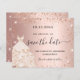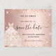Une petite fille et tendance Enregistrer la carte Date pour une Quinceañera, 15e anniversaire fête. Un arrière - plan rose élégant en or décoré de faux étincelles et d'une robe. Personnalisez et ajoutez une date et un nom/âge. Le texte : Save the Date est écrit avec un grand script de style à la main tendance.