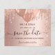 Une petite fille et tendance Enregistrer la carte Date pour une Quinceañera, 15e anniversaire fête. Un arrière - plan de dégradé d'or roux et rose décoré de gouttes de parties scintillant, de mousseux et de ballons. Personnalisez et ajoutez une date et un nom/âge. Le texte : Save the Date est écrit avec un grand script de style à la main tendance.