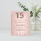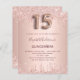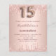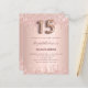 Une invitation moderne, élégante et glamour pour une Quinceañera fille, 15e anniversaire fête. Un faux rose or à l'apparence métallique arrière - plan avec une élégante parties scintillant d'or faux rose goutte à goutte, peinture goutte à goutte. Le nom est écrit avec un rose moderne de couleur or foncé à la main écriture style. Personnalisez et ajoutez les détails de votre fête. Le numéro 15 est écrit avec une police de style ballon, script.