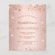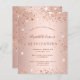 Une invitation moderne, élégante et glamour pour une Quinceañera, 15ème anniversaire. Un arrière - plan métallique à l'aspect faux rose d'or avec fausse parties scintillant. Le nom est écrit avec un rose moderne de couleur or foncé à la main écriture style. Personnalisez et ajoutez les détails de votre fête.