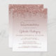 Cette invitation branchée de quinceañera présente une frise brillante rose or faux parties scintillant et sombre arrière - plan. Le mot "Quinceañera" et le nom de l'invité d'honneur apparaissent dans le script décontracté d'écriture rose foncé. Le même design rose de parties scintillant d'or goutte apparaît sur le côté inverse.