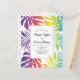 BUDGET Couleurs arc-en-ciel motif de feuilles tropicaux lesbiennes faire-part de mariage avec code QR sur le dos à RSVP en ligne. Il présente un motif coloré de monstères tropicales et de feuilles de palmiers aux couleurs arc-en-ciel et votre texte dans un cadre avec une bordure noire. Vos noms sont en typographie de script tandis que le verso inclut le code QR à RSVP en ligne.