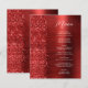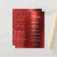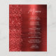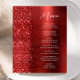This elegant modern wedding menu features a faux diamond glitter border on a red faux brushed metal background. The customizable text combines white handwriting script and sans serif fonts. The red brushed metal and glitter design is repeated on the reverse side.