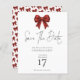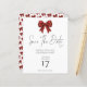 Budget Red Parties scintillant Coquette Bow Christmas Party Enregistrer la date.. Un semi-brillant de 4,5 x 5,6 pouces à prix réduit, d'une taille plus petite, semblable à une carte postale. Il y a UN par feuille, Éclatez vos invités festifs avec un faux arc de parties scintillant et coordonnez votre invitation de l'autre côté sur le noir classique. Un élégant script informel pour Enregistrer la Date et le reste du texte que vous pouvez facilement personnaliser.
