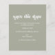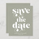 Budget Modern Stylish Typography Wedding Save the Date in modern neutral boho shade of sage green. Perfect for letting your future guests know of your happy event or engagement! Please contact us at cedarandstring@gmail.com if you need assistance with the design or matching products.