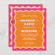 Budget Retro Squiggle Wavy Pink Orange Faire-part de mariage photo