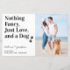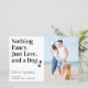 Laissez votre Best Dog annoncer votre mariage avec cette moderne et élégante 'Nothing Fancy, Just Love, et un chien' chien de compagnie enregistrer la date des cartes postales. Ces cartes postales budgétaires doivent être postées en tant que cartes postales surdimensionnées, ce qui peut entraîner des frais d'affranchissement standard, mais elles n'ont pas besoin d'une enveloppe ou d'une étiquette d'adresse de retour. Customisez avec votre photo de fiançailles préférée, la photo de chien, ou la photo avec le chien, et personnalisez avec les noms, la date et l'emplacement du mariage. Ces invitations de mariage de chien sont un must pour les amoureux de les chiens et les mamans de chien! DROIT D'AUTEUR © 2020 Judy Burrows, Black Dog Art - Tous droits réservés. Budget Rien De Fancy Just Love Chien Enregistrer Les Cartes De Date