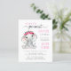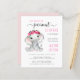 Une mignonne invitation à saupoudrer de petite fille à petit budget avec "Our Sweet Little Peanut Is On Her Way" écrite dans un mélange de typographie rose et gris doux, un joli script avec des swashes, et une aquarelle d'un éléphant de petite fille avec une couronne de fleurs sur la tête. Personnalisez les noms du bébé Irl et de la mère dans la typographie rose et les détails de l'arrosage dans la simple typographie grise moderne.