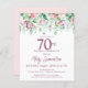 Elégant 70e anniversaire modèle d'invitation de fête dispose d'un cadre doré et deux arrangements de roses rose rousse. Tout le texte est modifiable.