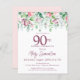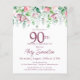 Elégant 90ème anniversaire modèle d'invitation avec cadre doré et deux arrangements de roses roses roses rousses. Tout le texte est modifiable.