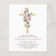 Budget Fille Dusty Rose Rose Florale et Eucalyptus - Croix Botanique Vert Sauge Religieux Première (1ère) Invitations de Sainte Communion