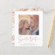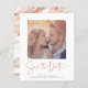 BUDGET Elégant Rose en or Marbre Typographie Enregistrer le Carte photo Date dans une police qui est élégant et évoque une sensation manuscrite romantique. Sur le dos se trouve une veine rose en papier doré à la mode en cuivre qui traverse le marbre classique. Ajoutez votre photo préférée pour une personnalisation supplémentaire. Ajoutez facilement vos noms et dates pour un design vraiment personnalisé. **Notre document BUDGET est plus petit et plus délicat, mais toujours beau!** Si vous avez besoin d'aide ou de correspondances, veuillez nous contacter à cedarandstring@gmail.com.