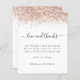 VEUILLEZ NOTER qu'il y a UN par feuille. Budget Rose Gold Parties scintillant Mariage Amour et Merci. Un prix économique PETIT 4,5 po x 5,6 po alternatif. Disponible dans un STOCK SEMI-GLOSS 110 lb CARD qui est l'option par défaut (plus épais pour les invitations), OU un STOCK SATIN FINISH 80 lb THINNER PAPER (idéal pour les boîtiers). Une touche de glamour avec une fausse bordure de parties scintillant en or rose en haut et un script élégant avec des swashes pour Love and Thanks. Personnalisez facilement le texte avec votre message et vos noms.