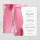 Le bord gauche de cette élégante faire-part de mariage moderne est orné d'une bordure en aquarelle rose ornée d'une parties scintillant en faux or. Le texte personnalisable combine écriture manuscrite, copperplate et polices italiques en gris fusain sur un arrière - plan blanc. L'envers est assorti d'un design d'agate rose et or.
