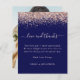 Un rapport qualité-prix BUDGET alternative sur une taille plus petite 4,5 x 5,6" semi-brillant poids 110lbs, qui est d'une épaisseur similaire à une carte postale (cependant ne convient pas à l'utilisation comme carte postale.) VEUILLEZ NOTER qu'il y a UN invitation par feuille. . Budget Rose Parties scintillant d'or Photo Mariage de la Marine Amour et Merci. Une touche de glamour avec une fausse bordure de parties scintillant en or rose en haut et un script élégant avec des swashes pour Love and Thanks. Sur le dos, remplacez l'exemple de photo par votre préféré de la journée comme souvenir pour vos invités. Personnalisez facilement le texte avec votre message et les noms qui est en rose pâle sur bleu marine.