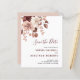 Budget Bohème Rose Poussiéreuse Aquarelle Floral Eucalyptus Faire-Part de Mariage de Dernière Minute... Si vous adorez l'allure bohème chic et que vous vous mariez, voici une charmante carte de Faire-Part de dernière minute à prix raisonnable à considérer. Notre carte de faire-part de dernière minute à petit budget présente un arrangement floral de style bohème rose poussiéreuse et burgundy avec des feuilles d'eucalyptus au-dessus de votre texte d'annonce de mariage en encre noire et burgundy. Le verso de la carte contient votre adresse de retour, un message personnel et les informations sur votre site web de mariage sur un fond rose doré clair. Tout l'exemple de texte peut être facilement révisé avec vos propres informations sur le modèle de personnalisation.