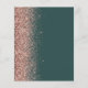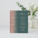 Le bord gauche de cet élégant menu mariage moderne présente une bordure rose en faux parties scintillant or. Le texte personnalisable combine un script d'écriture manuscrite grise de fusain et des polices de caractères sur un arrière - plan vert émeraude foncé. L'envers présente une parties scintillant en or vert et rose assortie.