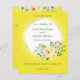 Roses et feuilles avec cadre circulaire doré sur l'arrière - plan jaune, à l'arrière vous pouvez écrire des informations supplémentaires pour vos invités