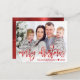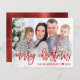 Apportez de la joie à votre famille et à vos amis avec l'une de nos cartes de Noël photo personnalisées. Ce design moderne présente votre photo avec une superposition ci-dessous et salutation en écriture rouge qui dit "Joyeux Noël" avec votre nom et votre année de personnaliser. Le dos de la carte a une texture métalique rouge faux. Conçu par l'artiste Susan Coffey.