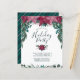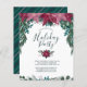 Ce design boho rustique présente un magnifique bouquet d'aquarelle en cascade de poinsettias dorées rouges et roses vintages, ainsi que de petites baies et de feuillage d'hiver luxuriant sur le devant, y compris la végétation d'eucalyptus et les boughs à feuillage persistant, dans des tons vert turquoise avec des détails dorés subtils. Sous les poinsettias se trouve le texte, "S'il vous plaît rejoignez-nous pour une fête de vacances" en serif populaire et la typographie de script de calligraphie pour un look à la main en vert turquoise foncé, suivi par le texte personnalisable pour les détails de la fête et plus de verdure et de baies en bas. L'arrière de la carte est orné d'un riche arrière - plan vert turquoise avec des rayures en diagonale bordeaux, roses et blanches pour correspondre à l'avant. Vous pouvez personnaliser cet élément en modifiant le texte du modèle de produits.