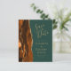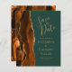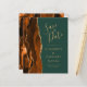 Le bord gauche de cet élégant mariage moderne sauf la carte de date comporte une bordure d'aquarelle couleur orange brûlée et rouille bordée d'une parties scintillant en faux or. Le texte personnalisable combine écriture manuscrite couleur or, cuivre et polices italiques sur un arrière - plan vert émeraude. L'envers est assorti d'une agate orange brûlée et dorée.