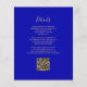 Le bord gauche de cette élégante faire-part de mariage moderne est orné d'une bordure de parties scintillant en faux or. Le texte personnalisable combine écriture manuscrite dorée, cuivre et polices italiques sur un arrière - plan bleu royal. L'envers offre de l'espace pour les détails mariages sur un arrière - plan bleu royal solide, ainsi qu'un code QR que les clients peuvent scanner pour visiter votre site Web et RSVP, qui économise le coût d'impression et d'envoi de cartes RSVP séparées.