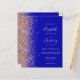 Le bord gauche de cette élégante faire-part de mariage moderne est orné d'une bordure rose en faux parties scintillant or. Le texte personnalisable combine écriture rose couleur or pâle blush, cuivre et polices italiques sur un arrière - plan bleu royal. L'envers est assorti d'un bleu royal et d'un or rose. REMARQUE : Les enveloppes ne sont pas automatiquement incluses dans ces invitations budgétaires, alors n'oubliez pas de choisir l'option "enveloppes blanches" !