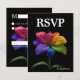 "Soaring Together" is a heartfelt RSVP card from the Technicolor Love collection, designed to honor love in all its radiant forms. At its center blooms the iconic rainblo lily—each petal drenched in vivid color, from fiery reds to serene blues and lush greens, shimmering with dew against a dramatic black backdrop. This flower isn’t just decorative—it’s a symbol of pride, unity, and the beauty of a love that refuses to be anything but true.