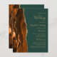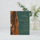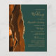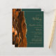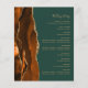 Le bord gauche de cet élégant programme de mariage moderne comporte une bordure d'aquarelle couleur orange brûlée et rouille, ornée d'une parties scintillant en faux or. Le texte personnalisable combine écriture manuscrite couleur or et polices de cuivre sur un arrière - plan vert foncé.